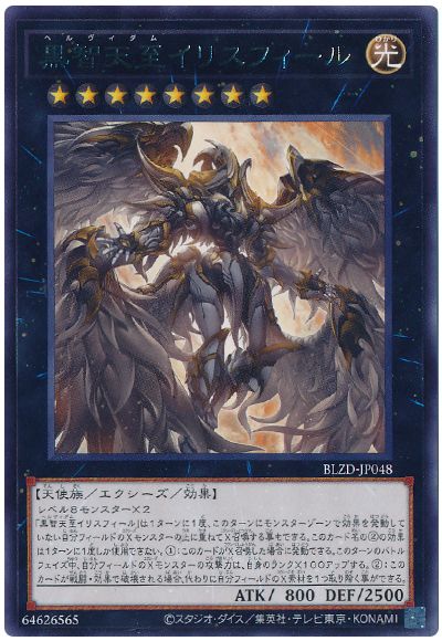 「黒智天至イリスフィール」は1ターンに1度、このターンにモンスターゾーンで効果を発動していない自分フィールドのXモンスターの上に重ねてX召喚する事もできる。